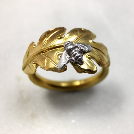 Gold Leaf & Bee Ring