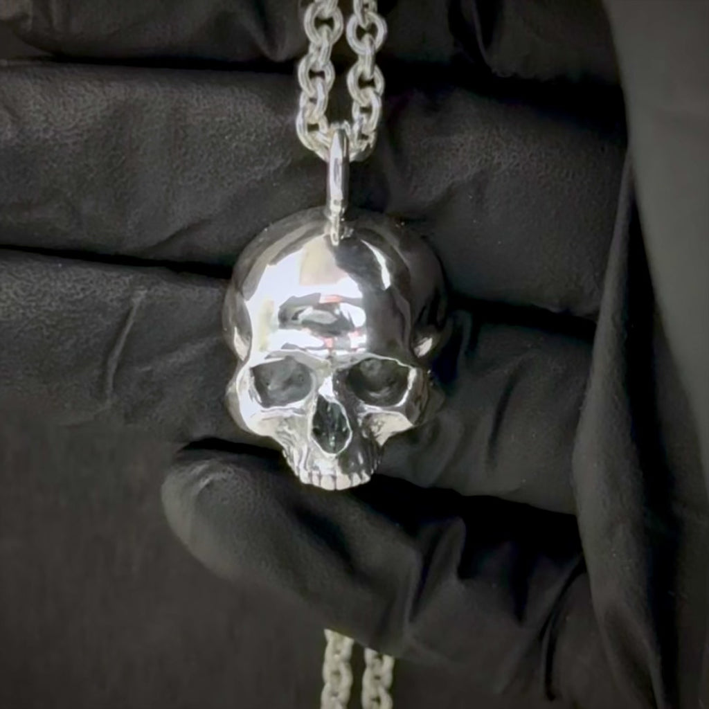 This unique pendant is created using a 3D scan of a real human skull, resulting in true anatomical proportion and detail — not a stylised or mass-produced imitation. It’s crafted by hand to order in The Jewel Thief Brighton workshop, giving each piece a unique finish and collectible value.