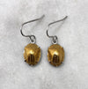Solid gold plated silver scarab beetle hook earrings. Cast from a vintage Victorian pendant.