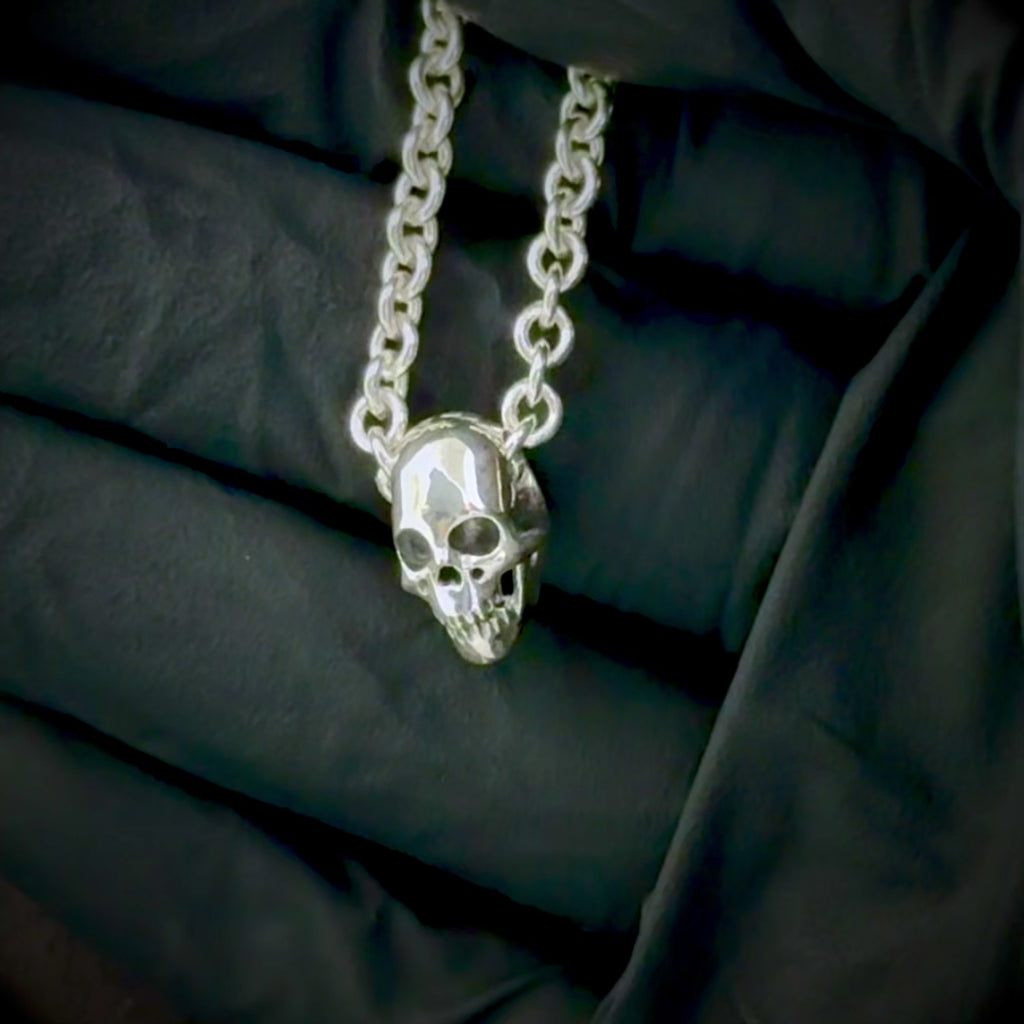 Solid Sterling Silver Skull Necklace — Handcrafted from a Victorian Bone Skull Casting